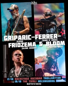 Det tager kun 15 min. at sejle over sundet. Knapt kan man nå at tage en kaffe, så vi kan kun opfordre til, at man begiver sig ud på denne lille tur, og blive vidne til en af de allerførste koncerter. Johnny Griparic på bas, (kendt fra bl.a. Slash), Frank Ferrer på trommer, (kendt fra bl.a. Guns N’ Roses), Bob Fridzema på keys, (kendt fra bl.a. Glenn Hughes), og Conny Bloom sang og guitar, (kendt fra bl.a. Electric Boys), har tilsammen fundet den helt store kemi, og det er den vi skal opleve d. 18 oktober. Det er virkelig rutinerede og garvede musikere der her er tale om, så det kan ikke undgå at blive sindsyg godt. Vi er fuld af store forventninger til dette specielle projekt.