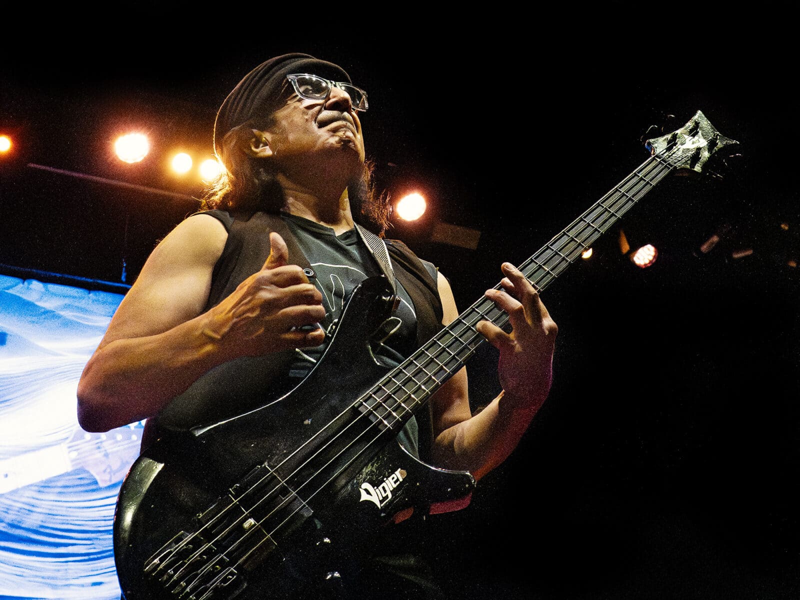 Bassisten John Avila (Steve Vai, Joe Satriani o.m.a.) ved også godt hvor han skal befinde sig rent rytmisk. Men det virkede ikke som han vidste hvor han scene mæssigt skulle placere sig. Han sprang rundt som en lille gummi trold, men det var da ret underholdende. Desværre var hans bas solo mere underholdning end det var musik. Alle hans bas pedal board effekter kom i aktivitet, og noget af det var fedt, andet af det var regulær støj, hvor jeg måske hellere ville have hørt noget mere af det han jo også kan, nemlig toner og rytmik.