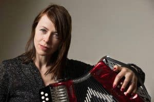 Jo tak. Vi kender historien om Fenrisulven og i “Binding of Fenrir” sætter McNeill ord og lyd på, hvordan guderne flokkes om jætteskabningen, der med tiden vokser sig så stor, at aserne ikke tør lade den gå rundt. De får dværgene til at smede et ubrydeligt reb Gleipner, lavet af blandt andet fuglespyt, fisks ånde og lyden af kattepoter. Fenris kan dog mærke, at der er lusk i foretagendet og går kun med på at lade sig binde, hvis Tyr lægger sin hånd i dens mund… Av! McNeill får med enkle virkemidler skabt en fortælling om, at man naturligvis ikke kan stole på nogen, når der ikke spilles ærligt spil. Hendes hovedinstrument, harmonikaen, understøtter godt folklore atmosfæren.