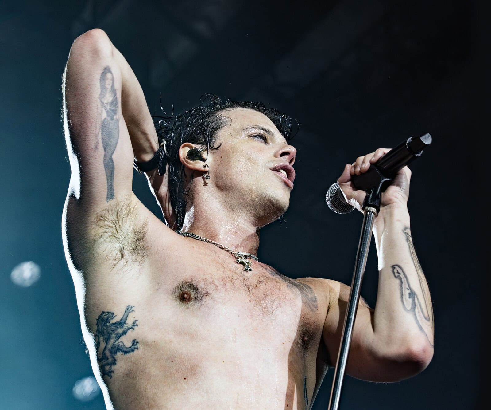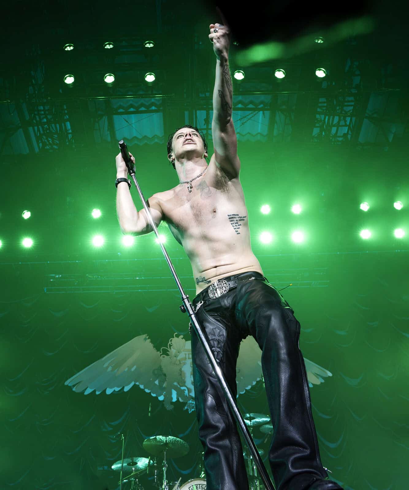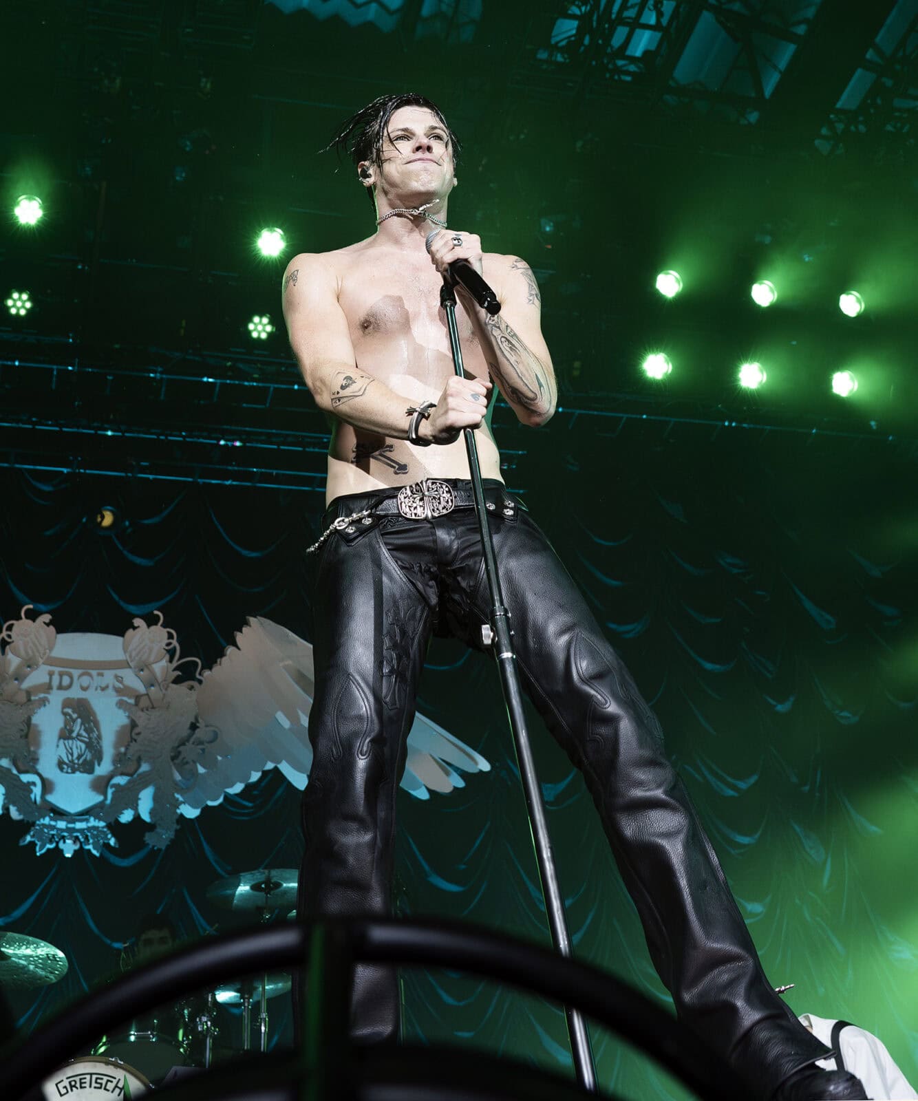 Jeg blev heller ikke skuffet da Yungblud kom ud af mørket og ind på scenen sammen med 7 tour-musikere, for festen startede i femte gear med nummeret “Hello Heaven, Hello” fra det seneste album “Idols”, som også har givet titlen til denne musikalske rejse som har ude på; “Idols World Tour”.